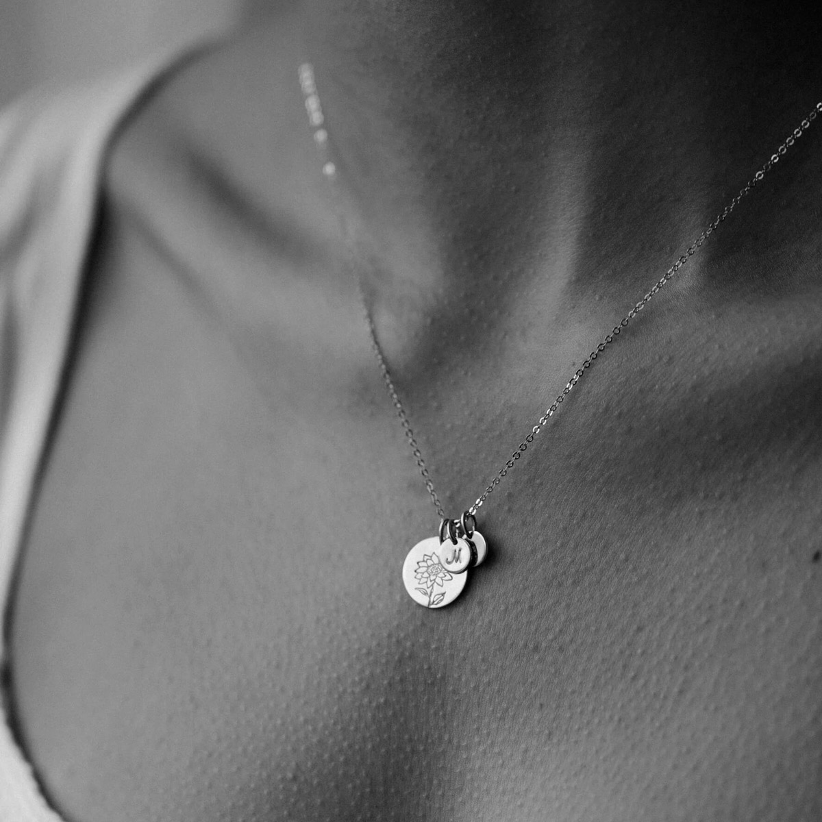 انتخابی خاص و ماندگار برای شما که زیبایی را با معنا و هویت شخصی میخواهید. - گردنبند نقره یک پلاک سایز بزرگ از کالکشن گردنبند فلورا و یک یا دو پلاک سایز کوچک از کالکشن گردنبند حروف (در صورتیکه تعداد بیشتری پلاک حروف کوچک درخواست داشتید با ما از طریق بخش تماس با ما ، تماس حاصل فرمایید.) به همراه زنجیر نقره با عیار 925 میباشد.