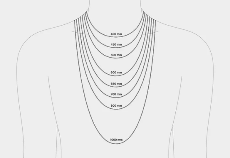 | ۳۸ – ۴۳ | طوق | کمی بالای گردن یا درست زیر استخوان ترقوه | تقریبا همه چیز / طوق بر گردنهای کشیده و گودیدار بسیار زیباست |